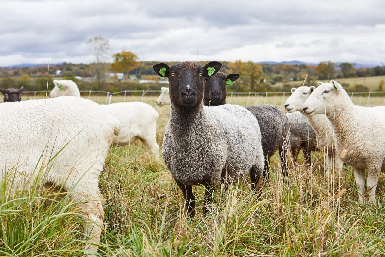 Sheep breeding at Philo Ridge Farm follows a similar balance of long-term stewardship and intentional production. The foundation of the flock is built on a Border Leicester–Romney cross, selected for strong maternal traits including hardiness, good mothering, and suitability for life on pasture. They also produce beautiful fleece. Each year, a small group of ewes is bred specifically to maintain this core genetics, with female lambs retained as future mothers. The majority of the flock is bred to a terminal sire chosen for meat quality, currently a Texel ram, named Doofenshmirtz, known for excellent muscling and finishing ability. Lambs from this pairing are raised entirely on pasture and harvested in the fall through winter, producing grass-fed lamb with depth of flavor while allowing the farm to strengthen meat quality without compromising the health and resilience of the breeding flock.